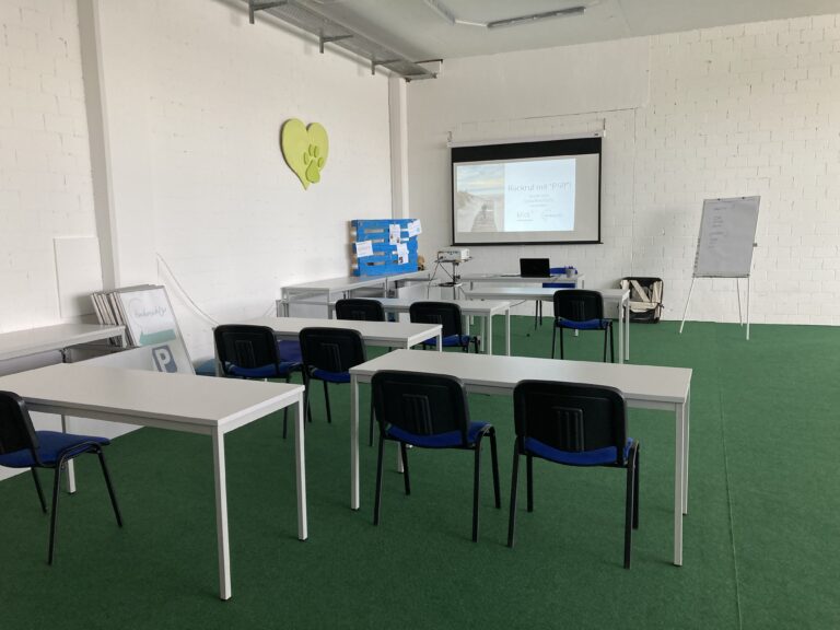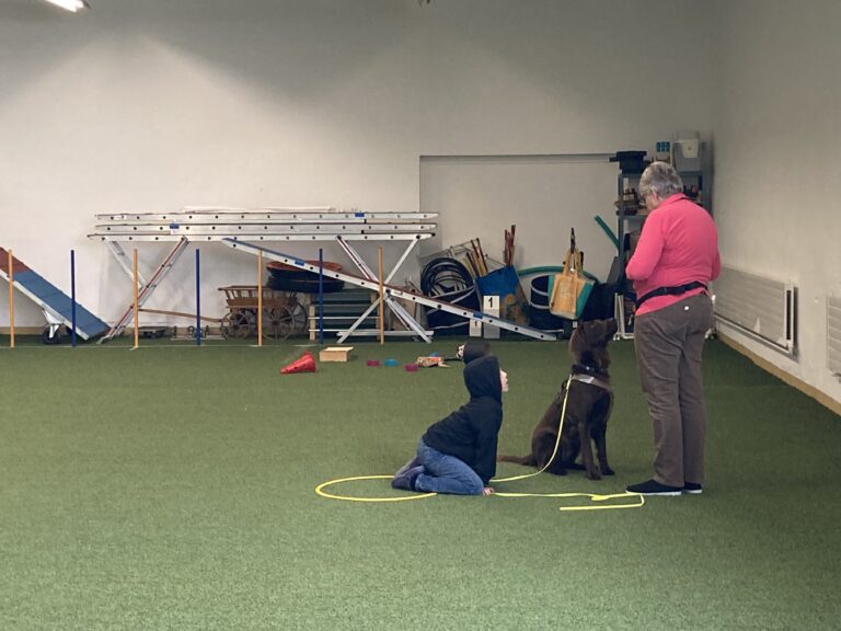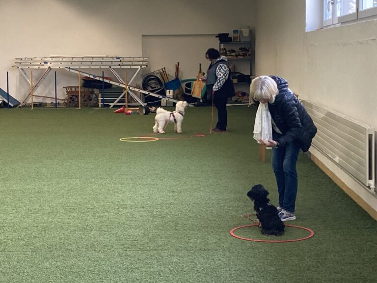 Theoretische Grundlagen bilden die Basis für praktische Trainingseinheiten mit dem Hund. Wir arbeiten in Kleingruppen à max. 5 Mensch-Hunde-Teams, je nach Themeninhalt im öffentlichen Raum (wetterunabhängig) oder in der Trainingshalle der Hundeschule Hundumsicht, Sommeri.